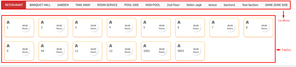Ordering from the menu: After the ‘Table Reservation’ or ‘New Order’, you will be redirected to the order page. There are different sections on the order page which are as follows: