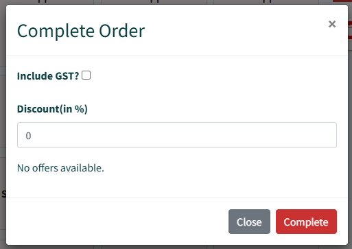 Completing Orders: Upon order completion, clicking ‘Complete All’ triggers a pop-up. This window allows you to: